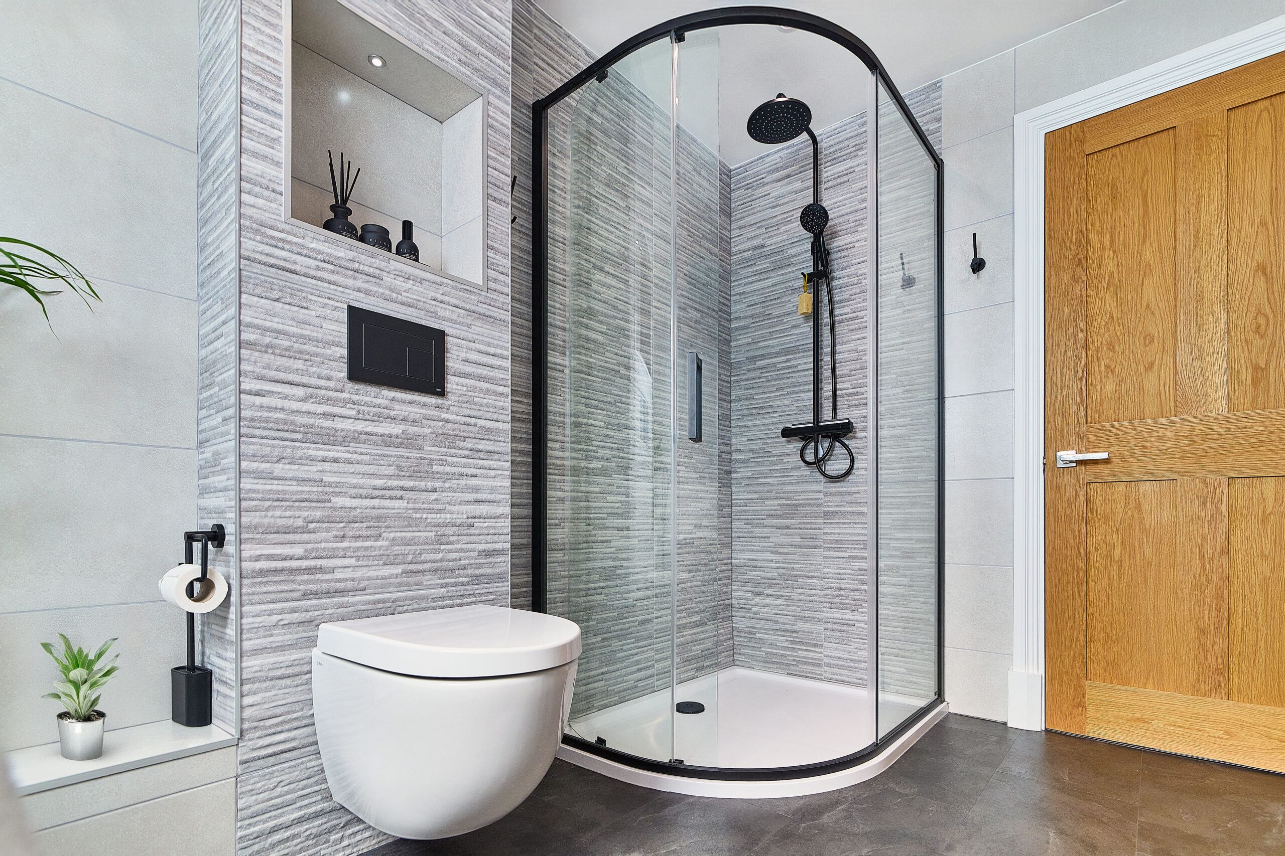 This Atherstone bathroom project was completed for a client in Austrey, who had recently moved into their new property and wanted to transform the main bathroom into a modern, light, and airy space. The brief called for a contemporary design with stylish black brassware to create a bold statement.